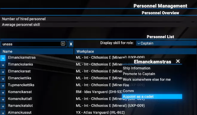 当自动分配功能启用时,训练有素的飞行员将替换玩家飞船上等级低于目标的现有飞行员。被替换的飞行员将被重新分配到学院成为学员。飞行员将根据所选优先级进行分配:按飞船用途:玩家可以根据飞船的角色(如战斗、贸易、采矿)或在选定舰队中的存在情况来确定飞船的优先级。