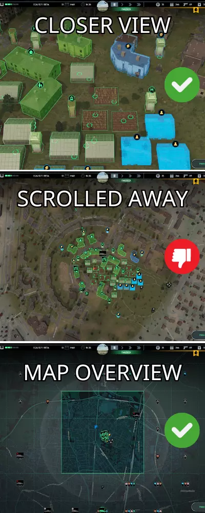 避免中等距离拉远视角。当镜头拉远但建筑物仍显示时,游戏可能会更加卡顿。请靠近视角或进入总览界面(按M键)。