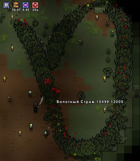沼泽守卫是个不错的选择,它栖息在沼泽洞穴中,可通过带刺化石召唤。其身体具有分节结构,能够持续造成良好的范围伤害,尤其是当它蜷缩成8字形旋转时。 使用生命值和伤害增益效果,再搭配高伤害的范围攻击近战武器(例如剑),可以非常快速地击败这个 boss。