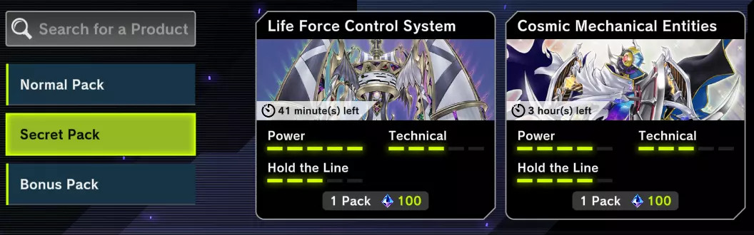 秘密卡包是你获取卡牌的主要来源,但一开始在商店里看不到它们。这些卡包包含特定卡组系列的所有卡牌,其中还会有一些填充卡。例如,【宇宙机械实体】秘密卡包包含爬虫妖、机甲骑士和梦幻崩影系列卡牌。你需要解锁这些秘密卡包。我会在卡牌合成部分解释具体的解锁方法。