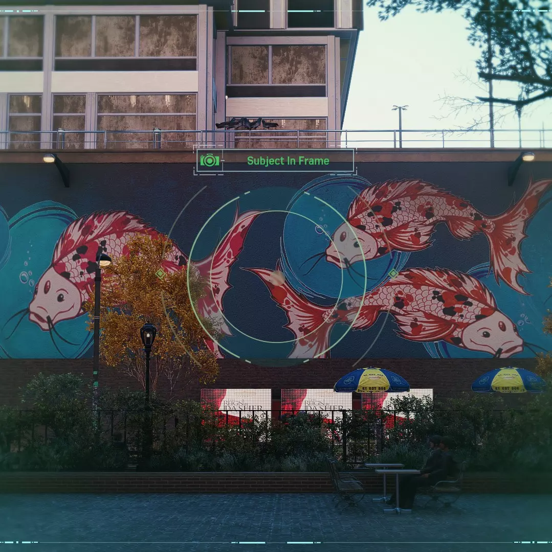 这个区域将会有更多与城市建筑相关的景点。需要拍摄巨大的指针时钟、有鱼图案的涂鸦以及风景如画的花园。