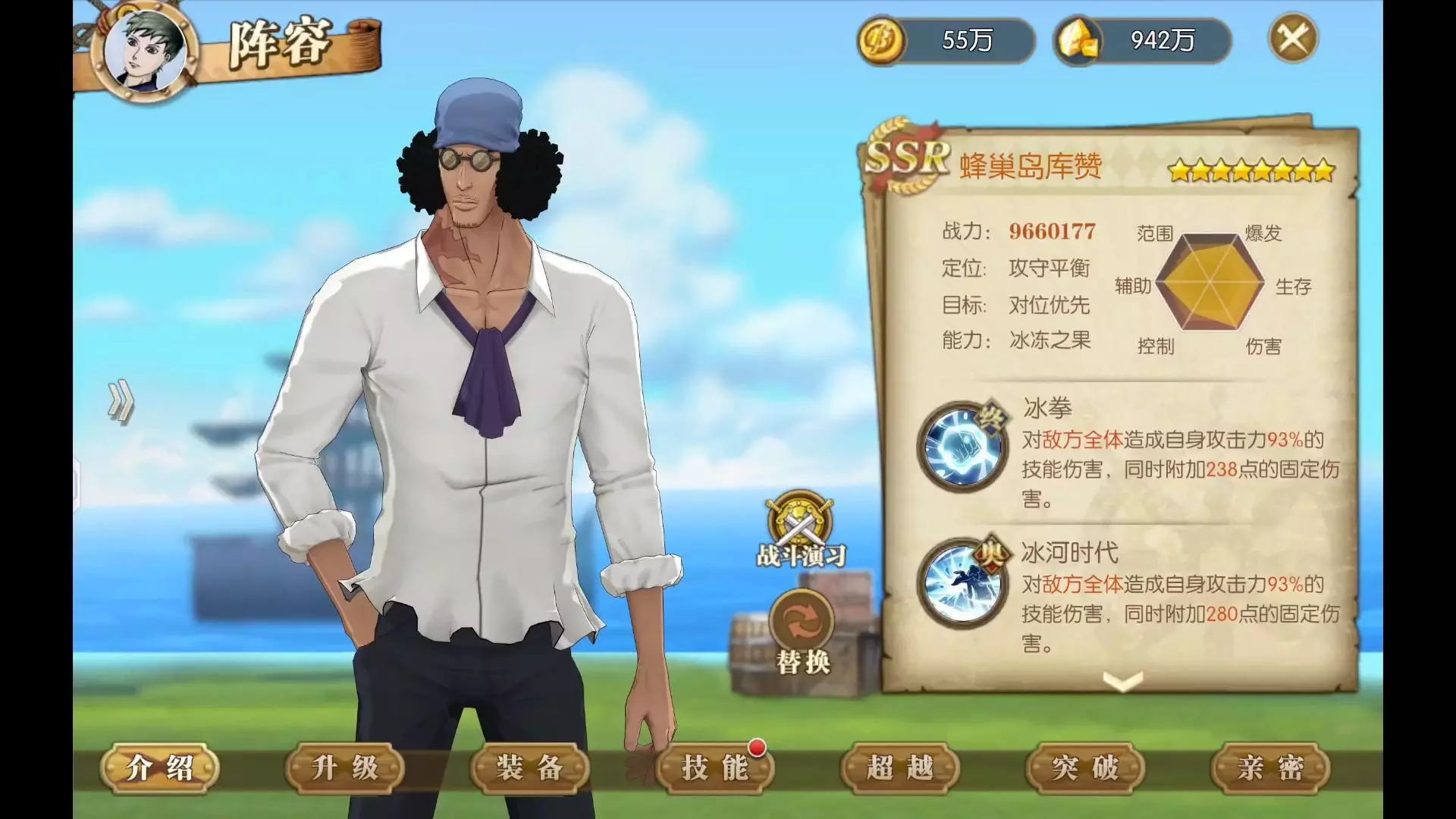 这是《海贼王》经典服中蜂巢岛库赞的实机技能展示,呈现了库赞的跑图效果、战斗技能特效等开发中画面,展现出其冰系能力的炫酷表现,实际效果以上线版本为准。