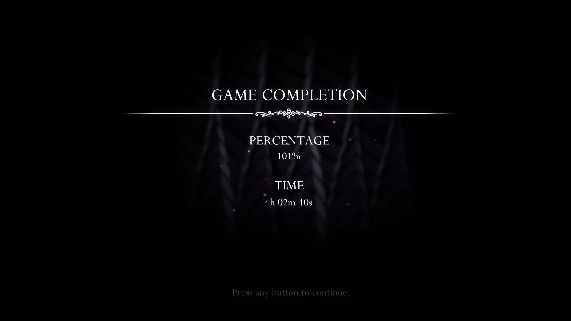 所以使用你的法术。深渊尖啸能帮助你快速击败像加利安和泽罗这样的飞行 Boss。荒芜俯冲使用后会提供一秒钟的无敌时间,所以你可以在面对破碎容器、叛徒领主等 Boss 时频繁使用它。另外,如果你还不知道的话,粪虫防御者特别容易受到荒芜俯冲的伤害,当他躲在地下时使用;但要注意这对白色防御者无效。 路线策略分解 对于任何玩过这款游戏的人来说,这在很大程度上是凭直觉就能理解的,但还是值得一提。由于每次重新加载存档时,游戏都会让你在最后坐过的长椅处重生,你可以利用这个机制作为一种伪快速旅行方法,这在游戏早期阶段尤其有用。 1. 在开始跑图前确定你所有的目标。当你从一个目标点前往另一个目标点时,沿途看到的任何【幼虫】都应该收集起来。确保你完成的所有目标加起来达到100%(我个人建议追求101%,因为我以前遇到过一个bug,明明确定完成了100%,但游戏内只显示99%的完成度)。 2. 合理规划目标顺序,尽量减少重复经过同一路径的次数。在获得【梦之门】能力之前,尽量避开需要绕远路的区域。例如,你可以使用梦之门逃离【深渊】或【乔尼的洞穴】(【乔尼的祝福】的所在地),这样能节省大量时间。 3. 开始跑图。 作为参考,这是我的(无BUG)速通记录。我用了略多于四小时完成(我的个人最佳记录!太棒了!)因为最后我有点太激动了,结果被空洞骑士杀死了,哈哈。我还忘了获取 Grimmchild 护符,因为我太笨了。 通关完成度: 3个面具碎片 = 3% 3个灵魂容器 = 3% 4次骨钉升级 = 4% 3个骨钉技艺 = 3% 7个战士之墓 = 7% 3个梦境者 = 3% 除 Grimmchild 外的所有护符:39% 3个带升级的能力 = 6% 梦之钉及觉醒 = 2% 飞蛾披风 = 2% 螳螂爪 = 2% 水晶之心 = 2% 伊斯玛的眼泪 = 2% 帝王之翼 = 2% 国王之印 = 2% 暗影披风 = 2% 2个斗兽场试炼 = 2% 除 Grimm 外的所有 Boss:15%