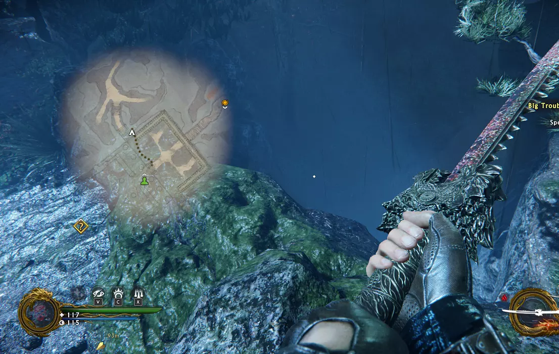 秘密2 找到洞穴入口。这里有多个入口,其中一个位于深坑中。