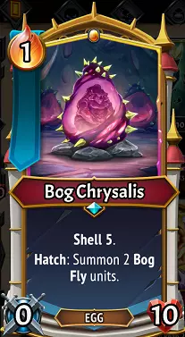 这个沼泽蛹有5点外壳值,这会引发一个重要的交互机制:它通常需要吸收5个充能回响后才会孵化,这意味着在该层进行任何收割伤害之前,这个蛋会吸收多达5个充能回响(例如,敌人有收割层数,但蛋吸收了所有回响,导致收割伤害乘以0充能,结果为0伤害)。 如果你对敌人使用断裂技能却没造成伤害,那就是上述情况导致的。通常在有蛋单位的楼层无法造成任何收割伤害,除非你的充能回响数量超过它们的外壳值。这也意味着一个奇怪的现象……你可以对自己的蛋使用断裂技能?脊椎首领的断裂卡牌总是带有灌注效果,并且会施加收割状态。通常你不会想要收割自己的单位,对吧? 不过,蛋需要孵化,所以如果你的楼层上有一个蛋单位和一张断裂卡牌,你其实可以安全地对蛋本身使用断裂卡牌。为什么呢?因为在蛋孵化之前,收割对它们所在的楼层总是造成0点伤害,而当它们孵化时,会在这个过程中清除所有增益/减益效果! 蛋的升级会延续到孵化后的单位身上。 免得你觉得蛋是个负担,让我们指出蛋单位的一个超棒小细节:施加在蛋上的升级也会应用到孵化后的版本上!所以虽然这是一个典型的沼泽飞虫单位: