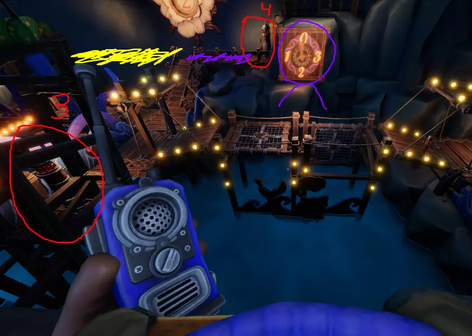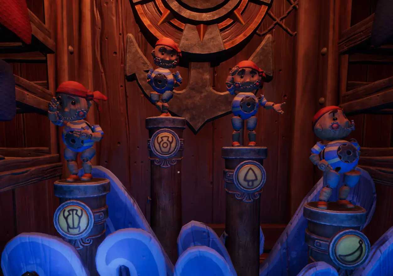 黄金礼包 达成【Карусели матросов】的最高分数 要获得最高分,你需要完成3个阶段的小游戏,每个阶段各5轮。 - 第一阶段:一名玩家将身处有摆姿势玩偶和4个按钮的房间。另一个房间有4个标有符号的木偶。玩家B需要告诉玩家A哪个符号与第一个木偶的姿势相对应。