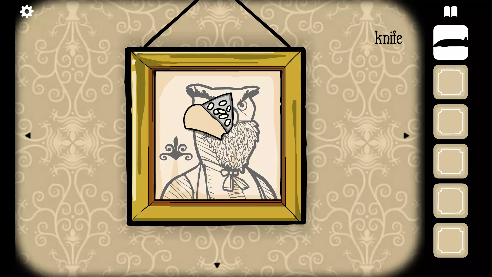 兔子腿:与剧情相关,无法错过。 白豆:获得小刀后,在【使用小刀打开顽固的箱子之前】,用小刀点击猫头鹰先生的画像。他的额头上有一道裂缝,选中小刀点击裂缝会撕开画像。再点击三次即可获得该食材。