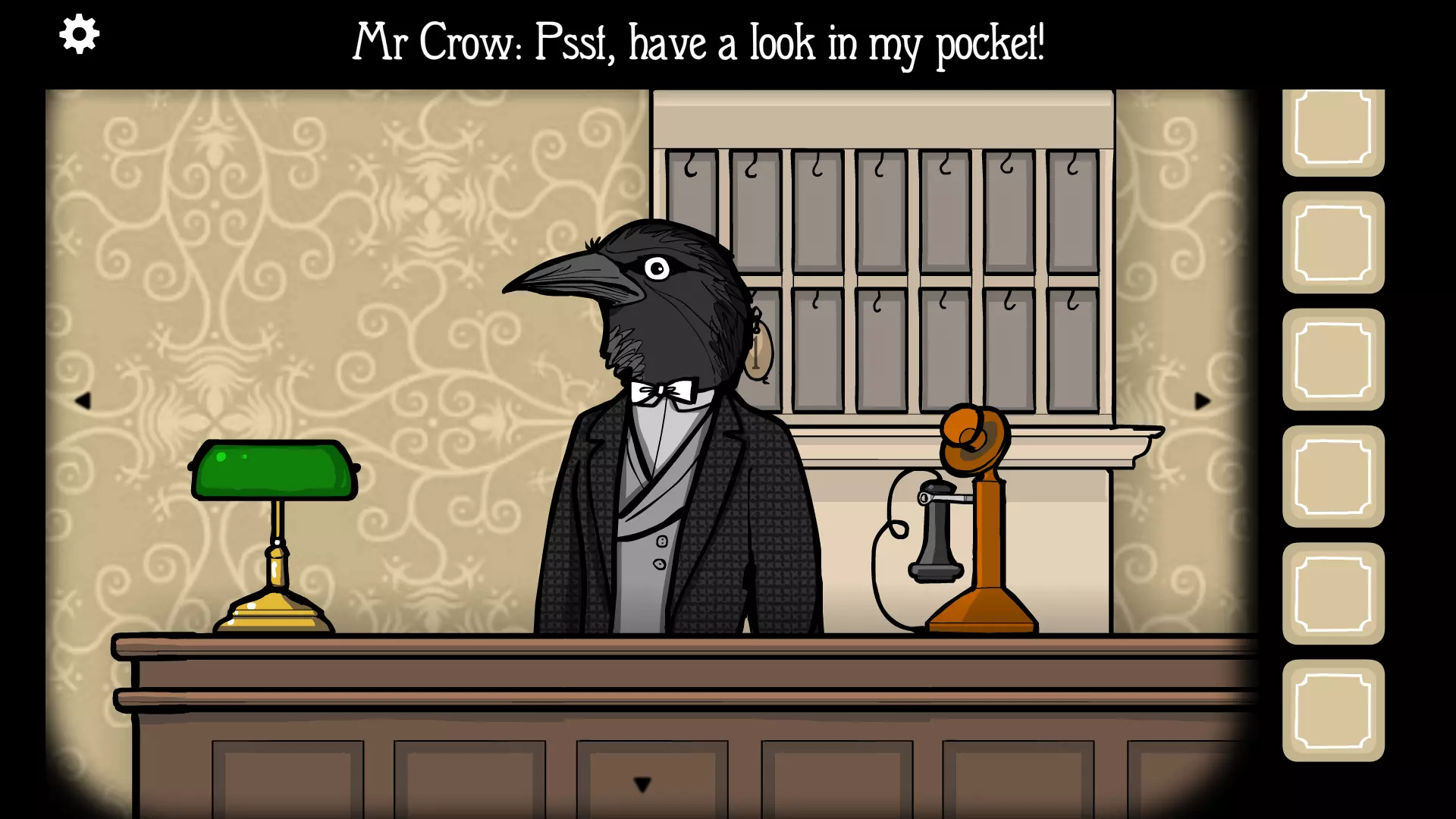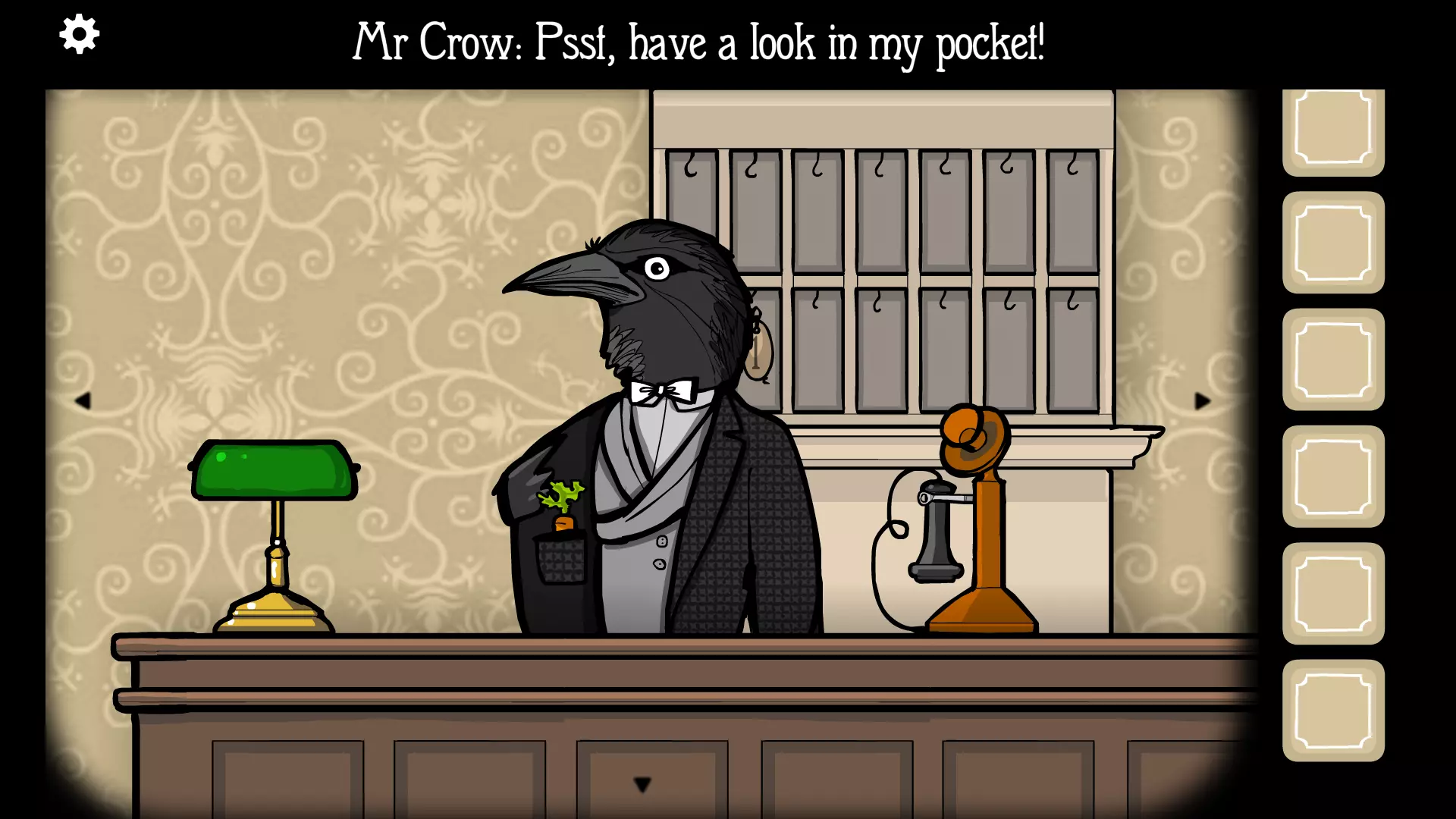 房间4:兔子先生 食谱及食材:胡萝卜白豆炖兔肉。 外部食材(可选):胡萝卜。 主要食材:兔腿。 房内食材(可选):白豆。 食材获取方法: 胡萝卜:可在第二个夜晚找到。乌鸦先生会开始鸣叫,与他对话后,他会让你看看他的口袋。点击他外套左侧两次,就能看到口袋里的胡萝卜。再点击胡萝卜两次即可获取。