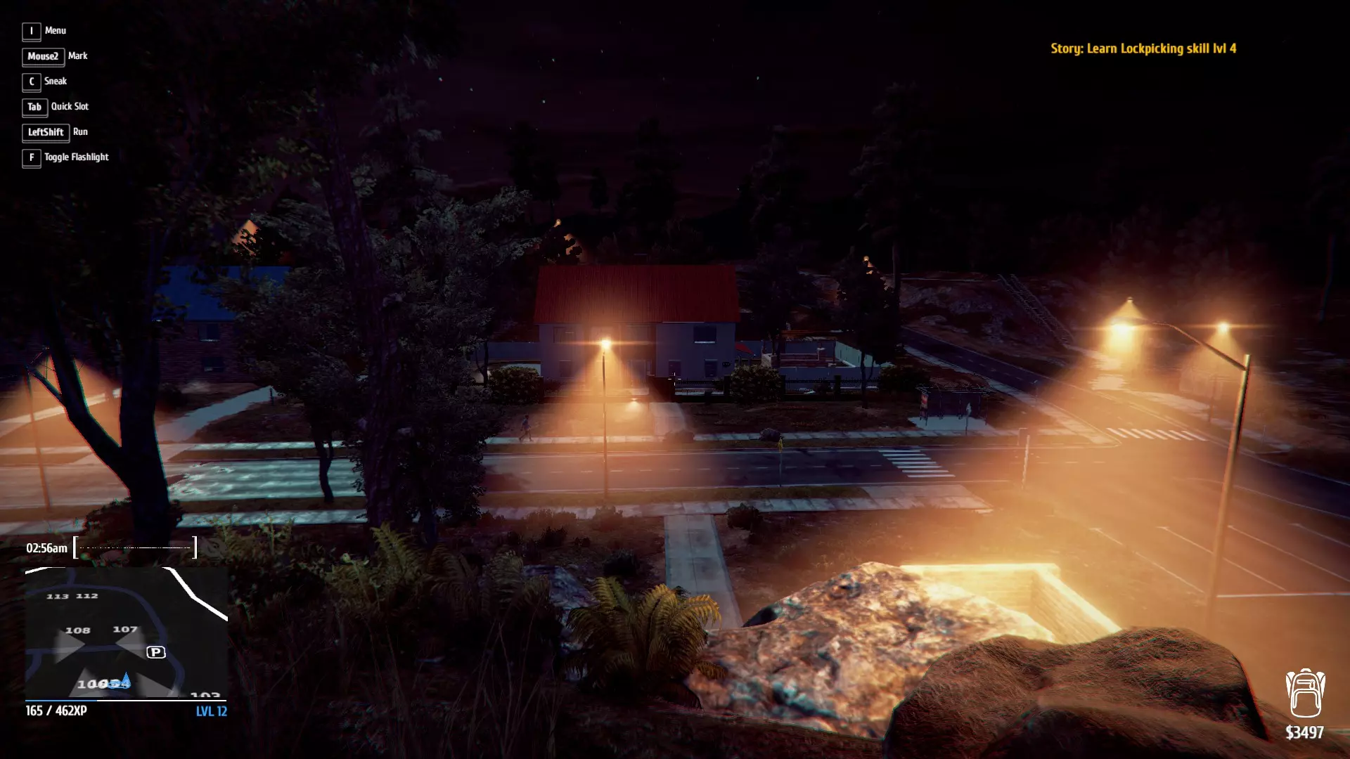 从这里居高临下,我们能清楚看到人们何时在花园或休息区活动,也能注意到有人经过窗户。一旦你大致掌握了某人在屋内的位置,就从观察点下来,靠近到足以高亮并标记他们的距离。完成标记后,重复两到三次这样的操作,你就能逐渐摸清他们的活动规律了。