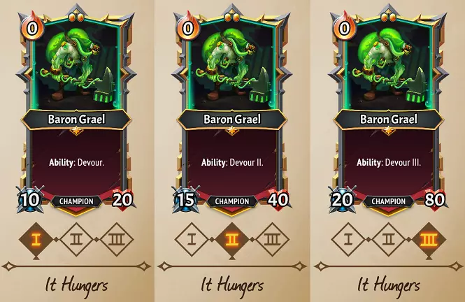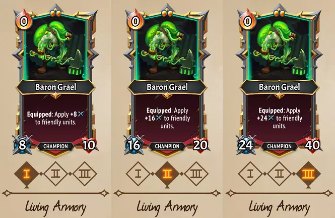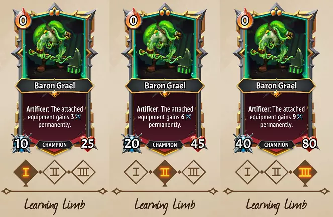 It Hungers: Baron Grael gains the Ability: Devour: Cooldown 1 to Sacrifice Assistant, gain their Attack. Devour II: Cooldown 1 to Sacrifice Assistant, gain 2x their Attack. Devour III: Cooldown 1 to Sacrifice Assistant, gain 3x their Attack. Strategies: The Baron no longer waits for his Assistants to fall in battle, and instead Eats them with an Ability, immediately freeing up space, gaining attack, and getting their Grafted Equipment in hand. Baron’s decent Health will be gradually paired with huge Attack stats, turning him into a mighty Attacker who can more quickly distribute your Grafted Equipment on Assistants. As we discussed in (U) Plague Doctor’s section, the Attack stat doesn’t mean base Attack on the card, it means whatever their Attack is at the time. So for instance, putting Baron & Assistants in the clanless room (U) Fight Club would mean +15 Attack granted when you Devour them. Further, any effects that Rage them increase their Attack, and putting Strengthstones for +14 Attack on Assistants means Baron will absorb that extra Attack as well! This path is massively improved if you can pick up a (C) Twisted Assistant early on, as Baron’s Attack can become huge here, so the Trample effect is very powerful. Ditto a (R) Double-Edged Bearer, but they’re typically only offered much later in a run. Once again, Space helps a lot here, particularly if you need to place multiple Assistants in a turn since Baron can only Devour one per turn. Flex potential: Living Armory & Learning Limb aren’t the best match as Armory requires you to repeatedly spam Baron with Equipment, and Learning Limb increases Equipment Attack values even when not paired with him. Flexing It Hungers into these paths can be pretty solid though! On Living Armory, flexing It Hungers can give you a quick way to grab those Scissor Hands, and gives you more benefit if your Assistants have Attack boosts through Rage/Fight Club etc. On Learning Limb, flexing It Hungers can more quickly get you the Artificer effect, as well as improve Baron’s Attack more quickly. If you didn’t get something like Trample or Multistrike effects, switching from It Hungers to Living Armory might make sense to buff other allies on the floor as well, but beware this will reduce his Health stat a lot. Overall Baron is a bit more flexible than Orechi, but all three paths have pretty good level III benefits if you stay the course. Other Lazarus League card clarifications Lazarus League has three Common Assistants in (C) Overworked Assistant, (C) Sanguine Assistant, and (C) Twisted Assistant that can have run-defining power in the right situations. Common cards stop being offered as the run progresses, so don't pass them up in early Drafts if they might fit your strategies. (C) Unstable Reaction Does not need to be played against enemy units! You can use it on your Assistants for a big Unstable explosion to enemies, and for substantially growing the explosions from an (C) Overworked Assistant or Reanimator Orechi. 50 Unstable is a pretty huge effect with Doublestack as well! Randomness be damned, all three potential effects of (C) Pseudoscience are viable for Doublestack upgrades, and all of these are pretty potent for a Common card. Though a (C) Potion Kit seems best to put on the allies of Brewmaster Orechi, Baron Grael can get excellent use out of this as well! Living Armory means he can buff his allies, Mix once, and replace it soon after. Learning Limb means the reasonable 8 Attack stat of Potion Kit will grow considerably over time. (C) It’s Alive is the only Advance card in all of Lazarus League’s kit, so if Shifting or Movement might be desired, don’t pass this up early on, even if you somehow can’t make use of the Lifesteal & Attack-increasing effect. Though Lazarus League has tons of ways to deal with backliners, (U) Acid Shower is the only Spell card they have that directly strikes all enemies, so consider grabbing this if you’re leaning on Spells to address enemy waves. Quick units have nothing to fear if (U) Risky Operation is used on them! Cards like this are another way to strengthen Assistants before It Hungers Baron Grael has a chance to Devour them. (U) Reanimation Lab is a good Room to give Deployable to, since it’s an immediate +7/+7 stat boost on summon. It’s a great Room to give Deployable to if combined with Endless & Reanimating units to continually proc those effects! And once again, It Hunger Baron Grael loves when his Assistants are stronger to Devour! A Freezestone is a potentially quite-useful upgrade for (U) Weaponized Prosthetic, both reducing the cost to 0 and giving you the flexibility to either remove Equipment before something bad happens (say, a (U) Glass Cannon Fragile unit is about to die), give yourself an Attack boost now that something like (C) Potion Kit is on cooldown, or for increasing an Assistant’s attack before It Hungers Baron Grael devours it. Ditto for a Freezestone on (U) Replicator Ray… between all the champions of the game and your units that may be upgraded a hundred different ways with events, this card has tons of potential uses, so the best thing you can do is to make sure it’s ready to use once your unit is out, Equipped, and the Floor is as full as it needs to be! (U) Organ Harvester of course is good for Sweep units that get lots of kills, but a big highlight here is Spikes, which count as Slay triggers! This means it can be a particularly potent piece of equipment for any Tanks given Spikes, particularly both of Lazarus’ banner tanks, (U) Makeshift Golem & (U) Hulking Mass who have Extinguish & Reanimate triggers. This is especially easy to do if paired with the (R) Electricity Chamber! The Strike effect of (R) Combustion Suit gives all enemies Unstable 5 even if they weren’t the target of the Attack! That said, it’s still the most useful on Sweep & Multistrike enemies who get multiple Strike procs per Attack. If you manipulate your deck carefully, 