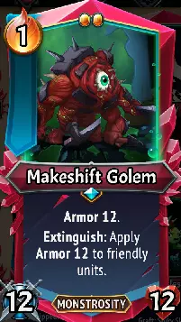 临时魔像:一个有趣的坦克单位,它涵盖了我们尚未探索的一种构筑类型。实际上,临时魔像在被消灭时比存活时更有用,因为其【消灭】触发效果会为同层的所有单位分担护甲。单看这一点,它表现尚可,略优于持盾侍从,但不如地狱号角的(U)钢铁工匠——后者每回合都会为所有单位提供护甲。两者的区别在于,拉撒路拥有大量的复活效果(包括在钢铁商人处必定能见到的相关效果),这使得魔像可以反复触发这种【消灭】效果。此外,由于它在【消灭】时也会为自身提供护甲,因此相比通常复活后仅剩1点生命值的单位,它可能会多承受几次攻击。这对于扛伤和保护后排脆弱单位来说都是个不错的选择! 升级/搭配:对于临时魔像,我特别喜欢三个钢铁商人的升级:1. 复生1,这能确保它触发第二次消灭效果。2. 无尽,让它被击败后能重新召唤一个新的。3. 二元论,能将其初始护甲和消灭触发效果提升到可观的24,并且如果与复生升级搭配使用,还能将复生提升到2级。当然,它也可以使用传统的坦克升级,比如心石、巨石、微石等,但上面列出的升级更适合它的玩法。最后,寻找复生效果来持续触发它的消灭效果吧!你可以尝试将其与装备【器官收割机】和【尖刺】效果搭配使用,以帮助触发【斩杀】效果,因为它本身的攻击性并不强。