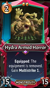 多头武装恐怖体:“抱抱”有着可爱的执念,它喜欢新玩具,但很快就会失去兴趣。这种矛盾让“抱抱”很生气,结果就是暴力。总之,多头武装恐怖体是一个怪异且可能非常强大的单位,它会扔掉你给它的任何装备,但每次扔装备都会获得额外的多重打击。这种特性显然对巴伦·格雷尔和他的【不稳定助手】有利,他们能让你反复给多头武装恐怖体装备【剪刀手】,并忽略其9点攻击力,转而追求更多的打击次数。如果你能通过升级、攻击加成和狂怒来提升它的攻击力,你就能拥有一头强大的野兽!但要注意,由于它每次都会移除装备,除非被沉默,否则你无法在它身上维持装备效果。升级/搭配:攻击加成至关重要,这样九头蛇的连续打击每次都能造成更高伤害。力量石、速度石和巨石都是不错的选择。除此之外,最佳情况是使用巴伦·格雷尔的【C】不稳定助手,利用他们的剪刀手装备,如果你有混血之发神器能每次使其进入狂怒状态就更好了。巴伦·格雷尔的学习肢体和饥饿之路非常适合与这个单位搭配使用,不过活体军械库之路有一些反协同性……巴伦可以提升九头蛇的攻击力,但前提是要装备那些本可以给九头蛇提供多重打击的装备!如果你用的是大蛇,那就尽早获取嫁接单位并考虑复制它们。最后,有个有趣/奇怪的小提示……如果你给九头蛇装备【融合装备】,它会将其视为两件装备并获得2次多重打击。挺酷的!不过,这是否值得失去融合装备的效果呢……我想,这就是趣味性与实用性之间的权衡吧?