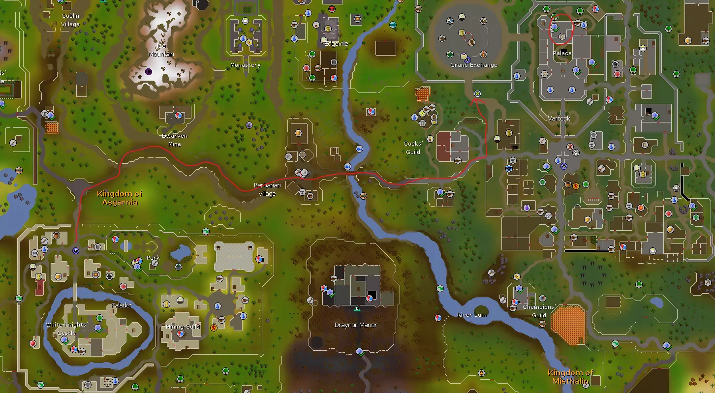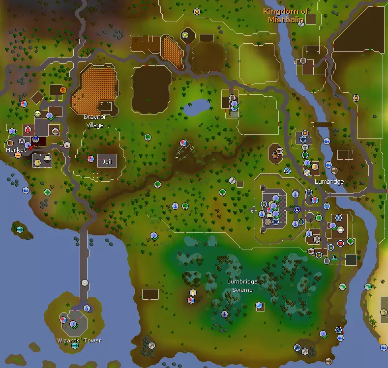 This is a walkthrough and guide to give new free-to-play players a strong start in the game. Part 0 - Useful Notes (Very Important!) ________________________________________________________________ Reading this guide If you just want to get to the walkthrough part that you can follow along with, skip to Part 1 - First Steps. I still recommend at least looking at the wiki section below, first. The walkthrough is not supposed to be super optimal. I will try to prevent a lot of backtracking, but for the most part this is just about providing a somewhat structured and informative way for a new player to experience their first hours in the game. ________________________________________________________________ The Old School Runescape Wiki Another thing you should keep in mind: This guide is not flawless. I'm hoping it will be a huge help for new players. However, I am not perfect. There will probably be details I miss, or problems you run into that I didn't account for. For these situations, use the wiki.[oldschool.runescape.wiki] It is one of the best-kept wikis for a game i've ever seen. Even the most seasoned veteran of this game will use it frequently. For most questions you may have, there will be an answer in the Wiki. I highly suggest you bookmark it. The Wiki also has its own New Player Guide[oldschool.runescape.wiki] that I suggest you use as a supplement to this one. It has a lot of valuable information, including many things I don't touch on. ________________________________________________________________ What can I do in this game? Runescape is a true sandbox MMO. This means there is no set order you have to do things in, and no limit to how long you can pursue some part of the game you enjoy. You could watch tv and chill out while training Fishing, moving from spot to spot to catch the best kind of fish your level allows. You could drop your catches on the ground when your inventory is full to level as fast as possible, or you could store them in your bank. These stored fish could then be sold, or used to train Cooking. If you cook them, you'll have created your own reserve of food, giving you an advantage when it comes to combat! Or maybe you want to get into fighting as soon as possible. You could train your combat skills, sell your loot to buy new equipment, and eventually even team up with other players to take on incredibly dangerous and difficult Raids! These raids can net you some of the most powerful equipment in the game, either to keep for yourself, or to sell for massive profit. You could even fight other players! In an area called the Wilderness[oldschool.runescape.wiki], players can roam by themselves or in clans, fighting other players for their loot and for bragging rights. Not only that, but there are several PVP minigames where you can compete for prizes and rankings too! Like doing quests? Runescape has a lot of them. These quests can range from helping a farmer shear his sheep for money, to a dangerous world-spanning adventure that rewards you with an entire new spellbook of ancient power. There are whole story lines of quests, and no shortage of rewards for completing them. Which leads me to... ________________________________________________________________ Quest Guides Throughout this guide I am going to be linking to quest guides on the wiki. These are comprehensive step-by-step walkthroughs that will help you massively. There is also an awesome member of the community called Slayermusiq1 who has a YouTube channel where he has posted excellent video walkthroughs of every quest in the game. If a video walkthrough sounds easier for you to follow than a text-and-picture one, feel free to bookmark that playlist. One more thing about quests. Although the guides I describe above will give you the tools to rush through every quest you encounter, I strongly encourage you to take your time with doing quests. Jagex put a lot of effort into writing hilarious dialogue and truly interesting stories. If you rush through them, you'll be missing out on a lot of good stuff in my opinion. ________________________________________________________________ Player Generosity The Old School Runescape community is largely very fond of new players. It is quite possible that at some point while getting yourself established, you will encounter a veteran player that wants to give you a bunch of free stuff. You can take it if you want to, but I advise you to politely decline. A big part of the fun in Runescape, at least in my opinion, is making your own way in the world. Working to earn money so you can buy a strong new suit of armor you recently got the defense skill to wear, and knowing that your effort has made you more capable to take on the dangers of the world. That's Runescape to me. If you are gifted tens of thousands of coins for no effort, it will definitely suck a lot of the fun out of the early game. The time you spend earning your own way is important. For meeting new friends, getting familiar with game mechanics, and preparing you for potential future grinds. Also, some players might try to lure you to dangerous areas or worlds, promising free stuff. Remember, if something sounds too good to be true, it probably is. ________________________________________________________________ Scammers, Spam Bots, and Reporting It's possible that at some point you will encounter someone offering to do things like "double your money" or "trim your armor". These are always scams. If you meet someone that asks you to give them anything valuable in a trade, I advise you to be extremely cautious and to check the Scams page on the Wiki.[oldschool.runescape.wiki] Scamming is against the rules of Old School Runescape. If someone is trying to scam you, report them by right-clicking on them or on one of their chat messages, and pressing the 'Report' option. Reporting scammers helps protect both you and any potential future victims of the scammer. Another annoyance you may encounter is a spam bot