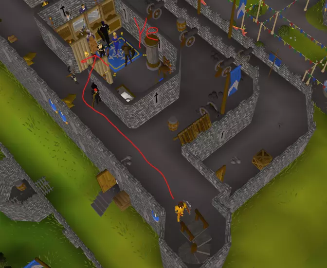 拿起那个被圈起来的渔网,然后去找那个穿着蓝白衣服的人聊聊钓鱼的事。 我建议你先在这里放松一下,钓钓虾,一直钓到钓鱼等级10级。如果你想的话,可以把它们烹饪了。不过不用留着这些虾,它们不值什么钱。 【此处插入一个关于鱼饵的笑话】 等你的钓鱼等级到10级后,回去找冒险家乔恩,他会给你一根鱼竿和鱼饵作为奖励。然后,确保你的背包里只有鱼竿和鱼饵,再向南走,使用“鱼饵”选项开始钓鱼。当你的背包满了,就去卢姆布里奇的烤炉把鱼烹饪了,然后存到银行里。就这样一直重复,直到鱼饵用完。 如果在钓鱼等级达到20级之前鱼饵就用完了,那就再拿起渔网,继续用渔网捕鱼,直到等级升到20级。现在速度会比以前快,因为你现在可以捕凤尾鱼了。不过我还是不建议保留它们。 钓鱼等级达到20后,如果你愿意,可以去做其他两个采集任务。我建议你也把采矿等级练到10级,可以在钓鱼点附近开采铜矿石/锡矿石然后扔掉。 鬼魂与绵羊 既然你已经有了一些等级和储备食物,你应该再做几个任务! 我建议至少腾出21个背包空间,完成【Sheep Shearer】来赚点钱和提升一些 crafting(制作)等级。 我还建议你完成【The Restless Ghost】来获得大量 prayer(祈祷)等级和一个相当不错的护身符。既然你已经获得了所有食物并接受了战斗训练,现在准备好进行真正的冒险了。准备好去寻找宝藏了吗?我们出发吧。 第二部分 - 要塞 验证器 在我们继续之前,你需要为你的《RuneScape》账户设置银行PIN码并开启双重认证。别担心,这并不难。 都设置好了吗?该开始了。 前往目的地 首先,将除了你最好的盔甲和盾牌之外的所有物品存入银行。取出26条熟鲱鱼,如果数量不够可以用沙丁鱼替代,并留出2个背包空格。如果你没有冒险家乔恩,就必须用烤鸡或虾来替代。这种情况下,在接下来的部分要格外小心! 然后,打开战斗选项菜单,关闭自动反击。这样做是为了防止你的角色试图攻击那些你要跑过去的怪物。 要从这里前往安全要塞,你必须与卢米bridge墓地的吸血鬼伯爵切克交谈。他会检查你是否有银行PIN码和验证器。如果你问他是否有地方可以了解更多信息,他会免费将你传送到安全要塞的入口。他只会这样做一次。 传送后,你会正好出现在入口旁边。