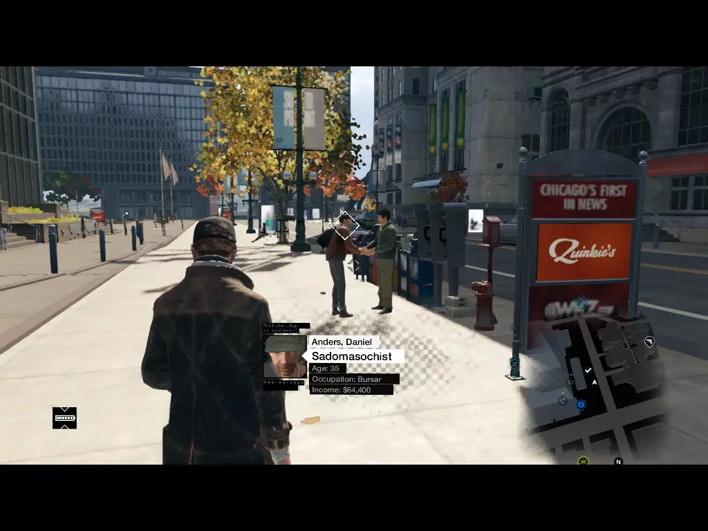 第二步:“花点时间分析周围环境” 如果你感觉自己被跟踪了,拿出分析器(Z键),如果市民显示“无威胁”状态,那么你很可能正在被跟踪。