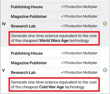 进入冷战时代 当你完成社会主义阶段时,你已基本完成世界大战时代的研究,但还缺少少量科技。 此时是建造牛津大学奇观的时机。 牛津大学将完成你在世界大战时代的最后一项研究,并且借助严岛神社,你将解锁冷战时代的首个科技。 严岛神社:
