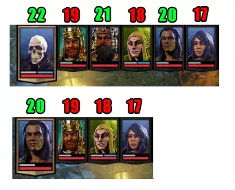 可以看出,在伤害方面,军事技艺的强化比武器掌握的强化,甚至两者同时强化的效果都要强。不过,这只有在你拥有某种额外加成(例如来自“力量”或“敏捷”)的情况下才成立。此外,还需要考虑武器掌握强化带来的精准度和暴击伤害倍率等额外加成。但是,再次强调:“如果选择军事路线,伤害数值会增长得更快”。 在战斗中,你的角色和敌方角色会根据 initiative( initiative)值依次行动。不过,即便你方拥有较高的 initiative,但如果己方队伍中有人的 initiative 更高——你方将在 initiative 最高的敌方角色之后行动。为了进行实验,我创建了6个角色,双方各3人。友方的 initiative 分别为22、21和20。敌方的 initiative 分别为19、18和17。行动顺序如下:你(22)-敌人(19)-你(21)-敌人(18)-你(20)-敌人(17)。例如,如果只有一个角色的 initiative(先攻值)为20,对抗三个先攻值分别为19、18和17的敌人,那么行动顺序将是:你(20)-敌人(19)-敌人(18)-敌人(17)。如何利用这一点,由你自己决定。