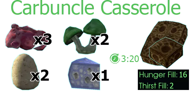 红宝石 casserole 3个红宝石。2个野猪蘑菇。2个土豆。1个异界奶酪。