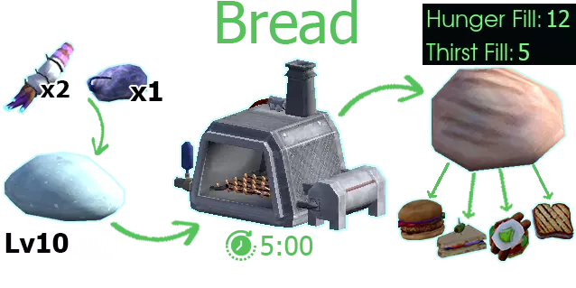 用途:用于制作【宝石兽与饺子】 *面包 诡异肉馅派/害虫炖菜派/简易害虫派 获取方式:烹饪等级达到10级解锁 制作方式:在工作台使用两份异界小麦和一份奶囊制作 *生面团