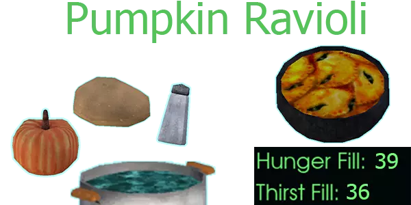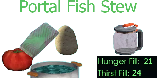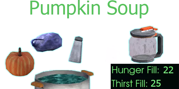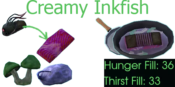 南瓜汤 南瓜、牛奶囊、盐 应用【超级满足】效果 - 饥饿值和口渴值降低20% 粉碎深渊✨✨✨✨✨✨ 鱼类食谱