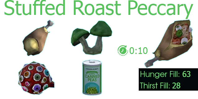 用途:土豆香肠炖、温馨意面、“鸡蛋”与西貒法式吐司、佩奇早餐哈希 获取方式:在带有带电水的锁着的房间内的终端解锁,爬上右侧房间的天花板。 制作方式:在工作台使用两块西貒排、一份生物废料和一份盐制作 【生西貒香肠】