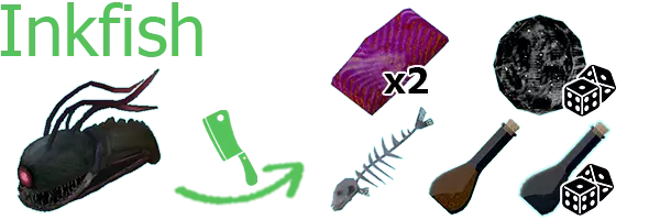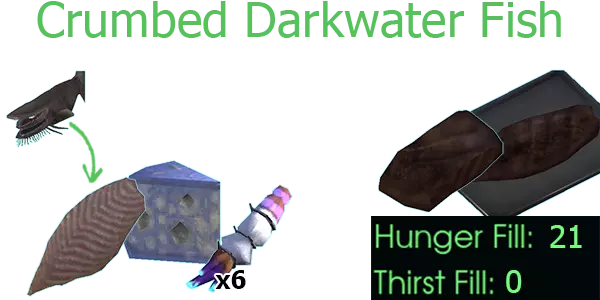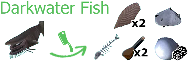 暗水鱼 2份暗水鱼片、鱼骨、2份鱼油、盐岩、发光之眼(稀有)