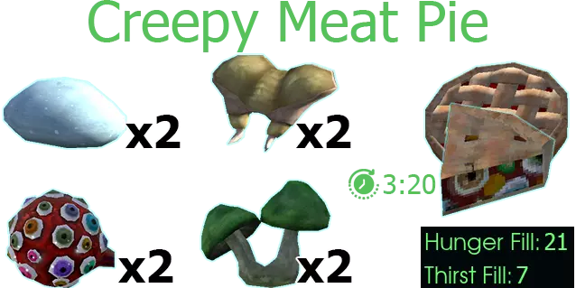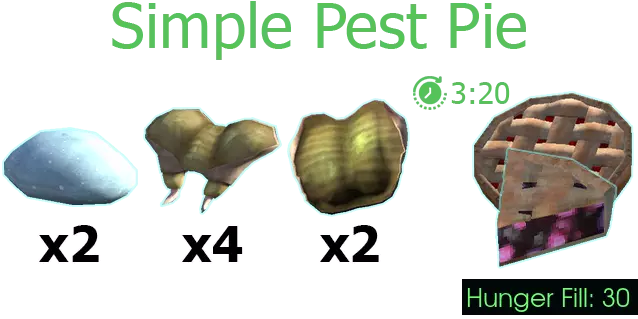 用途:分裂豌豆汤、害虫杂烩、熟安特汉堡、恐怖肉馅饼、简易害虫派 获取方式:切碎害虫时有几率获得 原料:生害虫