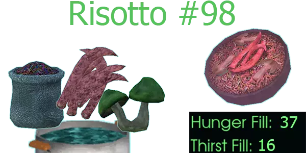 【汤品】烩饭 #98 原料:生赞特里姆大米、生IS-0098触须、红玉蘑菇 效果:施加【温暖美味】-寒冷抗性