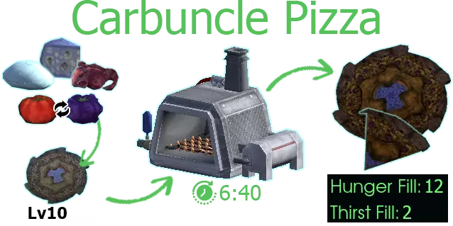 宝石兽披萨 原料:宝石兽、异界奶酪片、番茄/超级番茄、生面团(2份小麦、1份奶囊)