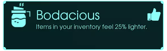 “轻盈 - 你背包中的物品重量减轻25%。” 同时还会在一段时间内减缓饥饿速度【SOUPER SATISFIED】