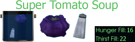 用途:超级番茄汤/蔬菜炖菜、奶油番茄浓汤、野猪炖菜、丰盛炖菜、蚂蚁汉堡/宇宙番茄沙拉卷/PLT三明治、“鸡蛋”野猪开放式三明治 获取途径:超级番茄植株 制作配方:番茄种子+反物质小麦+油(种子) 【超级番茄】