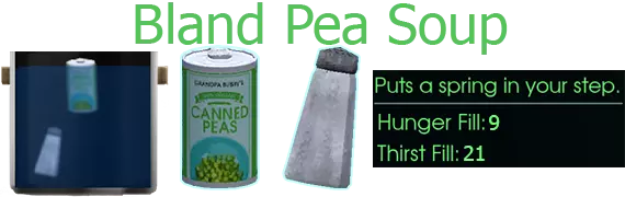 淡味豌豆汤 罐装豌豆。盐。 制作与建造经验值获取