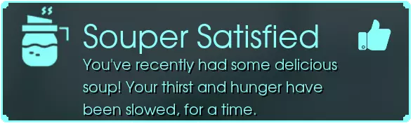 【心满意足的汤】- 你最近喝了些美味的汤!你的饥渴感在一段时间内得到了缓解。