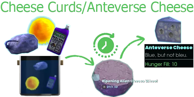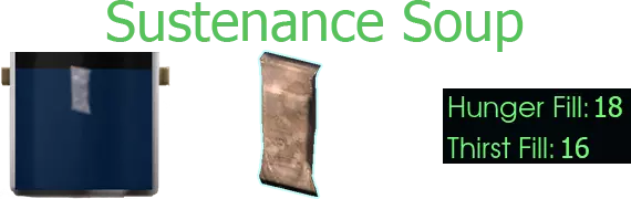 【汤→掉落物】 外星奶酪凝块→环太平洋深渊奶酪 环太平洋深渊凝胶。奶囊。盐酸。 焊料×4 - 银废料。金属废料。 胶水×4 - 野猪头骨。 劣质汤: 有毒汤【腐烂食物或塑料废料或胶水】- 生病:“你感觉不太好……”劣质汤有50%几率导致生病。 致命汤【玻璃或科技废料】- 死亡:“……你已经知道后果了……” 粪便汤【粪便】- 生病:“你感觉不太好……” 烤箱/平底锅/新鲜 新鲜
