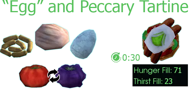 “蛋”与西貒肉塔汀 生西貒肉香肠。面包。“蛋”。番茄或超级番茄。 食材 早期食谱食材 >汤类相关食材< 别忘了可以使用Ctrl+F搜索汤品名称或食材。 此处所有食材大致可在游戏的第一个区域/前半部分找到。