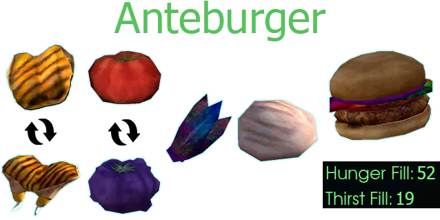 用途:害虫杂烩、肉炖菜、熟安特汉堡、害虫馅饼、烤害虫土豆、简易害虫派、熟害虫臀部 获取方式:切碎害虫时有几率获得 【生害虫臀部】