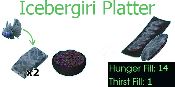 冰山拼盘 2份生寒带鱼排、一碗赞特里姆米饭 施加【寒带鱼女王的恩赐】- +2耐热性,但会移除温暖美味+头脑冻结