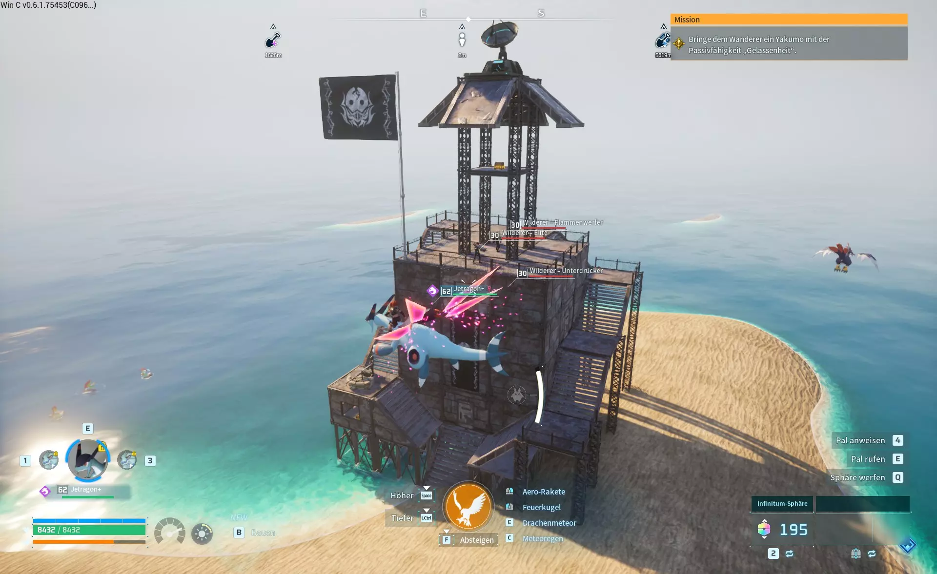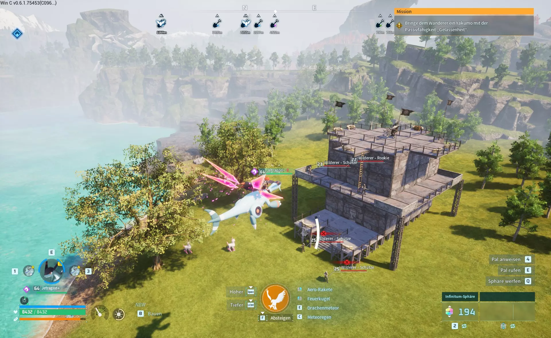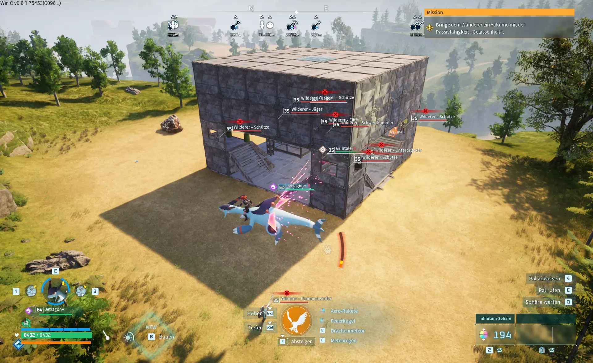 该阵营在中间岛屿有许多可能的基地位置。此外,它与简易营地共享刷新位置,这些简易营地只刷新一个装有帕鲁的笼子,没有宝箱。 我观察到各种位置,有时会刷新营地,有时会刷新基地,但这似乎相当随机。我用立方体标记已发现的营地,用不同的标记标记已发现的基地,因此红色圆圈是我可以确认有基地刷新的位置,而橙色可能是可能的位置,但我尚未看到基地在那里刷新。 基地类型1