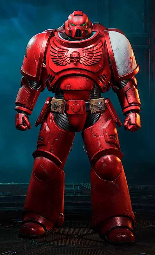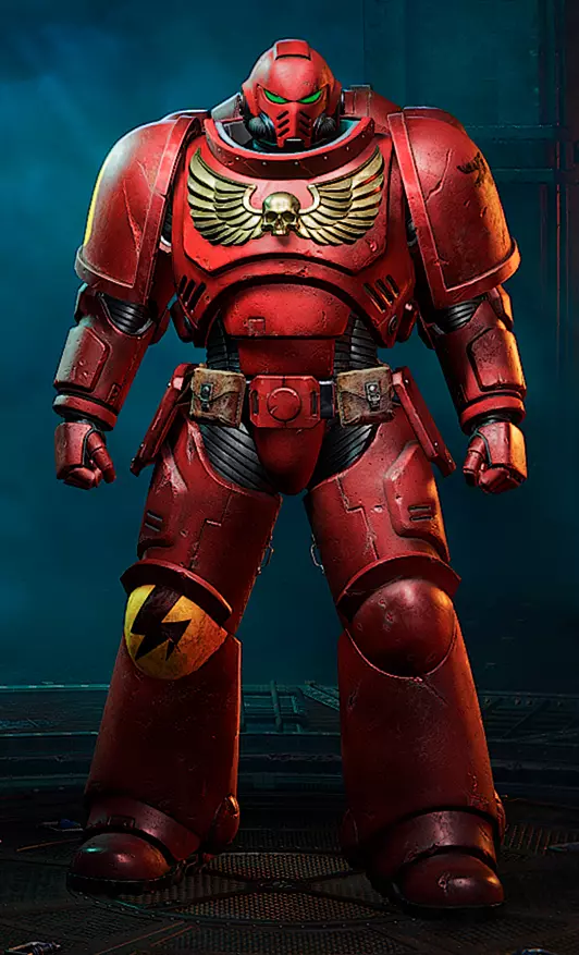 血刃 悲悼者 血天使红、梅菲斯托红、铅灰、黑圣堂 闪击黄、解放者金(可通过更改左膝甲颜色来选择战团,战团颜色可参考极限战士/帝国之拳指南)
