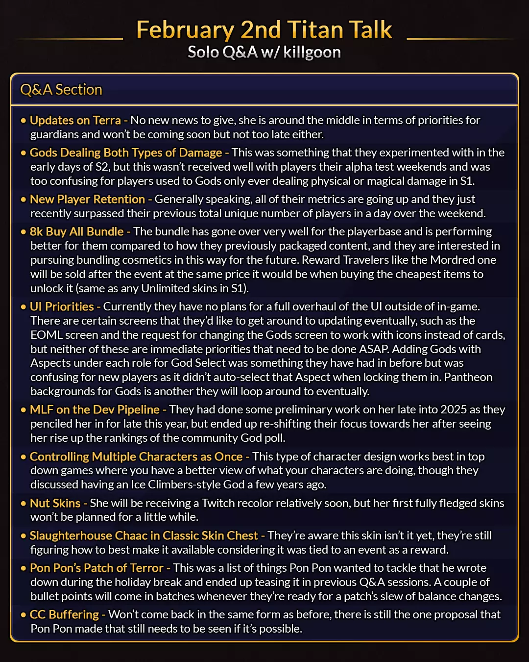 他原本计划在2024年初的Alpha测试阶段与莫德雷德一同发布,但由于其普通攻击持续出现问题,导致不断延期。Hi Rez目前暂无计划在近期发布他。【黄王哈楚尔】