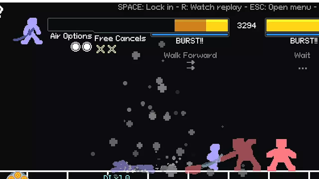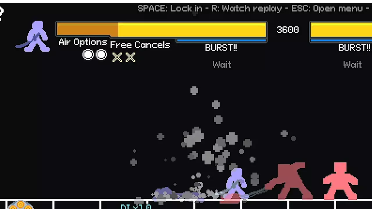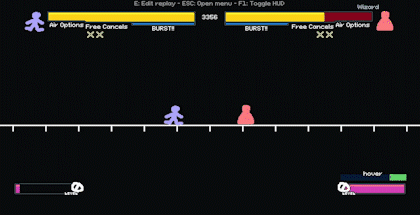 忍者:速度快,连击能力强,空中控制优秀,擅长闪避 牛仔:拥有大量快速招式且能传送,善于惩罚对手失误 巫师:远程技能 spam 角色,具备追踪飞镖和高伤害的慢速攻击 机器人:坦克型角色,攻击力强,拥有多种抓取和范围攻击,是游戏中地面控制能力最佳的角色 预测功能 当你进入对战并开始行动时,会看到显示你行动轨迹的残影,具体如下: