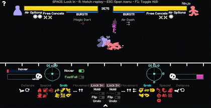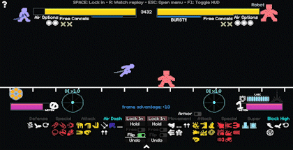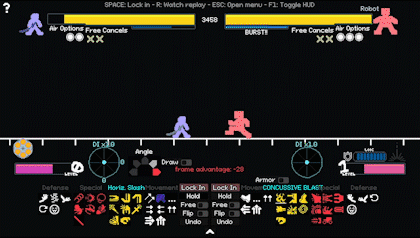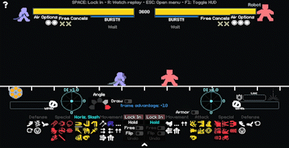 中级连招 在本节中,我会更深入地讲解连招,以防你在开始或继续连招时遇到困难。 【本指南的这部分仍在编写中。】 高级预判 归根结底,游戏的关键在于了解你的对手。你要尽可能在各种情况下,准确预测敌人的具体行动,而不仅仅是考虑对你最有利的招式。在50/50和石头剪刀布(RPS)博弈中获胜,比单纯为自己创造有利局面更为重要。尽管会受到伤害或游戏处于特定状态,但正是这种决定成败的机制决定了最终的胜负。 首先,永远记住不要高估或低估你的对手。如果你高估对手,就会忽略他们未设防的漏洞,并且会过度思考,从而被你预想中的招式击中。如果你低估对手,可能会为了打出高额伤害而冒更大的风险陷入劣势,或者在连招时没预料到他们会正确使用【方向输入(DI)】。你需要分别评估每个对手的技能水平和游戏风格,同时记住哪些战术对特定类型的策略和角色有效。 解决了这个棘手的部分,我现在来解释如何创造有利的【石头剪刀布(RPS)】和【五五开(50/50)】局面! 不平衡的石头剪刀布:在大多数情况下,玩家之间的石头剪刀布局面并不总是平衡的。我总结了一些在休闲游戏中经常出现的情况。伪猜拳:玩家看似处于猜拳(RPS)局面,但存在一种或多种能让某一方获得优势的行动。 互击:玩家可以在不发生招式碰撞的情况下互相攻击的局面,例如使用远程攻击。 策略博弈:玩家主动发起猜拳(RPS),发起者通过承受伤害来强制达成互击并赢得猜拳。这种情况在机器人的护甲技能中最为常见。 格挡重置:这是一种伪猜拳,防御方成功格挡后并未赢得猜拳,攻击被格挡但未被招架,双方重置为0帧优势。这种情况常被用于迫使对手承受持续伤害。 时间锁定:通常无需过多关注,对此应持保留态度。但如果对手在还有可用招式的情况下快速锁定回合,他们并没有检查每一个招式。通常是因为他们打算防御、使用移动或等待。留意他们的锁定时间,以判断对手的游戏风格。启用象棋计时器后,每一步所花费的时间都很重要,整体选择速度更快的玩家将获得更多时间来思考最重要的帧。时间耗尽的玩家会很快发现游戏变得多么紧张。