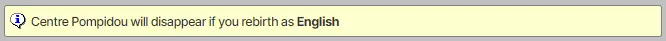 This also isn’t a significant hindrance. Once you have made good headway in your World Tour, you are likely hoping to reach the Information Age in every run anyway. The different-civilization requirement, also, is not strict. You can switch back and forth between the same two civilizations if you happen to have a favourite civilization, and there are some civilizations that make it incredibly easy to reach the Information Age. You just can’t rebirth to the same civilization you just played. 6. Should I Start My World Tour? If you have never reached Information Age, beginning your World Tour can seem daunting. You have likely encountered a few “walls” through your time with CivIdle, namely the Renaissance wall, “condo wall” (reaching Cold War), reaching Information Age, and then reaching Future. Many players begin their World Tours after they reach 400 EGPL, or Effective Great People Level. Others wait longer. Some even start earlier if they’re okay with being very patient the first few runs. This ultimately comes down to what your playstyle is. Are you an active player who likes to rebirth every day or two, or are you the sort to stay in a run for a week? Use this calculator[spectralshift.github.io] when you reach the peak of your science production. How long would it take you to reach the Information Age? Remember, to keep your Centre Pompidou alive, you only need to reach this era; you do not need to research a specific technology or reach Future. The second you select your Great People from researching the first technology in the Information Age, you are eligible to rebirth and move on. If pursuing your World Tour would only extend your usual run time by a day or so, it could be worth considering. Every civilization you complete speeds up the next run, and the effect of this is more pronounced the earlier you begin. If you tend to reach x5 to x10 for your production modifiers right now, Centre Pompidou will vastly accelerate your progress. The initial grind is outweighed by the benefits very quickly. 7. Frequently Asked Questions 1. Do I have to build Centre Pompidou every run? A: No. You only need to build it the first time while playing France. After that, Centre Pompidou will spawn in a random location on every map—just like natural wonders. 2. Can I build two Centre Pompidous? A: No. If you rebirth to France in the future, the Centre Pompidou that spawns at the beginning replaces the one you would ordinarily build after researching Software. 3. Do I need to research Software? A: Only to first unlock Centre Pompidou and then build it. After that, in all future runs, you only need to reach Information Age. Nanotechnology, Software, World Wide Web, and Financial Leverage are all eligible for honouring the conditions of the World Tour. 4. Can I repeat the same civilizations to increase the production bonus? A: No. Centre Pompidou operates much like a checklist. Once a civilization has been completed, it can no longer provide another bonus. Only unique completions count. 5. Can I move where Centre Pompidou spawns? A: No, you can’t. 6. I accidentally rebirthed to the same civilization! Is there an undo? A: CivIdle does keep some backup saves. If you’re quick, you may be able to reload from an earlier save, pre-rebirth. There is a pinned forum thread with instructions for this: https://steamcommunity.com/app/2181940/discussions/0/7260435610010445264/ 7. Is there a specific order that would be best to follow? A: You can go in any order you want, but if you’re starting at a lower EGPL, it would be prudent to start with the civilizations that are fastest to complete. When you begin your World Tour, you start with France completed. Rebirthing into Japan from there can be a quick way to double your bonus; Japan has a wonder called the Itsukushima Shrine that gives you a lump sum of science every time you research all the technologies of an era, enough for you to research the cheapest technology of the next era. England is an excellent choice after that. This civilization gets the British Museum wonder, which you can build and then convert into any other civilization-unique wonder you want. You could convert it into Japan’s Itsukushima Shrine, or if you’re worried about producing enough science to reach the Information Age in a timely manner, you could convert it into Germany’s Cologne Cathedral. The Cologne Cathedral grants you a one-time science bonus of the most expensive technology in your current era. It is also upgradable using faith, caravels, and knights. Each level for Cologne Cathedral grants a x1 production bonus to science-producing buildings (excepting clone labs). From there, Germany is the natural next choice due to the Cologne Cathedral wonder mentioned above, and then Brazil and India for their individual unique wonders (Cathedral of Brasilia and Itaipu Dam for Brazil; Ganges River and Red Fort for India). The differences are much slimmer between the remaining civilizations, so go through them as you wish. For those returning to CivIdle after a pause, Rome no longer has a consumption malus associated with the Alps, so the go-to recommendation to keep that civilization for last is no longer applicable.