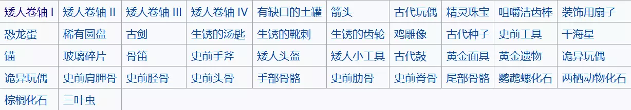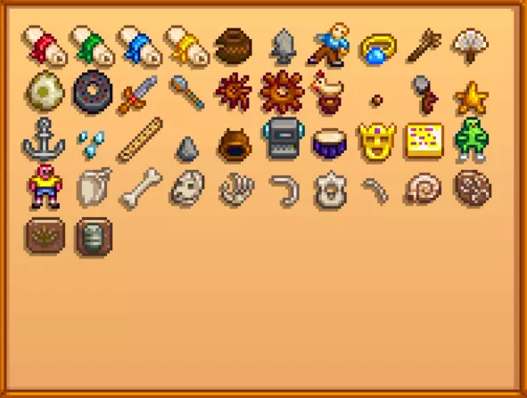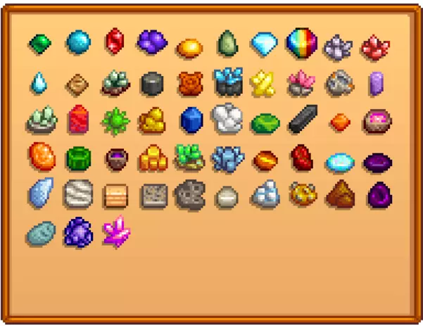 晶球类型 代码 晶球 [535] 冰封晶球 [536] 岩浆晶球 [537] 万象晶球 [749] 全古物代码 《星露谷物语》共有42个可收集古物