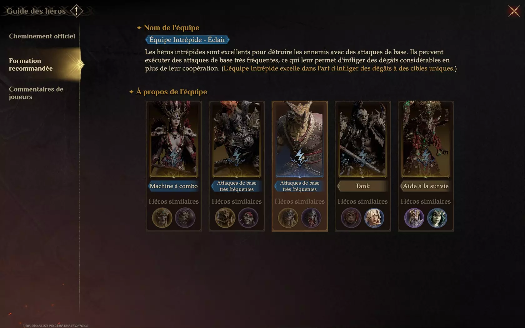 游戏内推荐阵容列表(官方) 本指南包含当前第1赛季、第2赛季和第3赛季的推荐阵容。 介绍 格式: 按特殊伤害类型分别推荐(例如:野性之火、燃烧之火、毒素等) 推荐阵容通常由5个角色组成:主输出、特殊伤害或副输出、特殊强化、坦克、辅助 每个角色位置尽可能提供最多2种替代选择 本指南主要面向新手。一些非传统阵容同样有效。 野性之火队伍