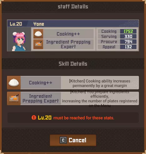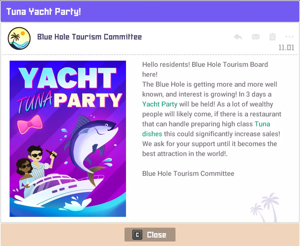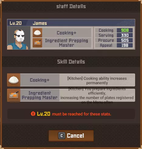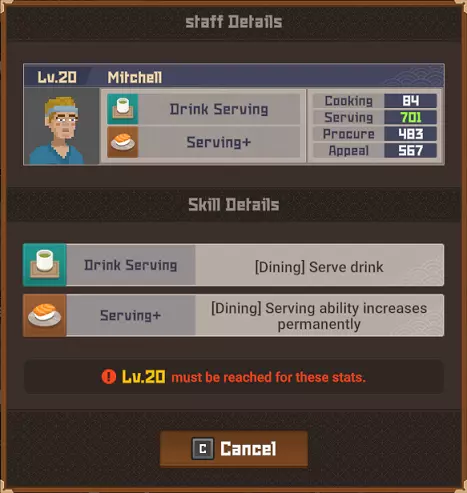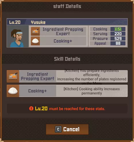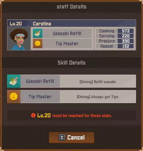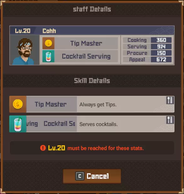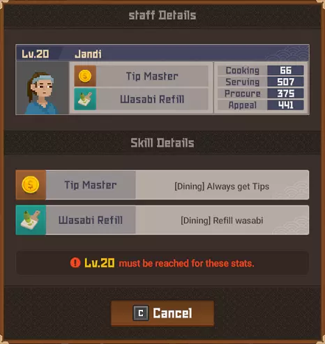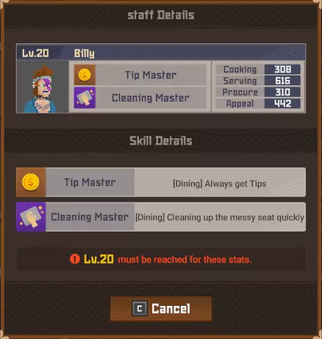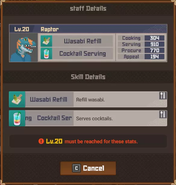 鹦鹉鱼战士 拥有保护头部的头盔。 攻击它的背部/尾部。 魔法桶水母 当你靠近时它会传送。 潜水前拿一把精准步枪。 毒幽灵鱿鱼 除非被深海中黄色箱子发出的紫外线照亮,否则无法被攻击。 银泰坦扳机鱼 只能被电伤害击中。 潜水前拿一个照明武器,不要与造成麻痹的电击混淆。 斑点海鳗 不确定它有什么特别之处,也许是因为只在晚上出现?直接射击并捕获它即可。 彩虹扇鱼 真正的扇鱼总是有闪亮的鱼鳍。假鱼鱼鳍上的光芒会在一段时间后减弱。 它位于水下湖,尝试在深处拥抱正确的墙壁,你就会找到它。这里是“Curious Child”成就的达成地点。 爆炸吸血鱿鱼 只要开枪射击它就会倒下。 餐厅员工 背景:员工根据当前的Cooksta等级分等级工作。当你选择雇佣员工时,会显示以下三个选项: 50美元(传单广告)- 按照当前社交媒体等级招募员工 150美元(电视广告)- 招募比当前社交媒体等级高一级的员工 400美元(互联网广告)- 招募比当前社交媒体等级高很多级的员工 这意味着:传单广告会招募当前等级(青铜、白银、黄金等)的员工,电视广告会招募高1-2级的员工,互联网广告会招募高2-4级的员工。员工可能会在多个等级中出现。在青铜等级时,佑介、简迪和刘既出现在传单广告中,也出现在电视广告里。最重要的信息是,当你最终达到黄金等级时,将无法再使用恭子和米切尔,我猜他们俩是青铜等级仅有的真正员工。 存在更高级别的员工出现在较低级别宣传选项中的可能性。 员工等级表