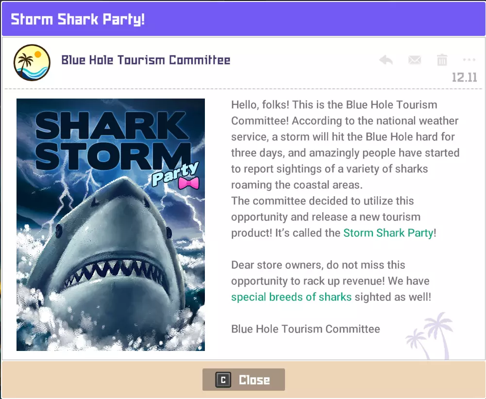 仅可在首次启动【金枪鱼派对】活动后找到特定鲨鱼