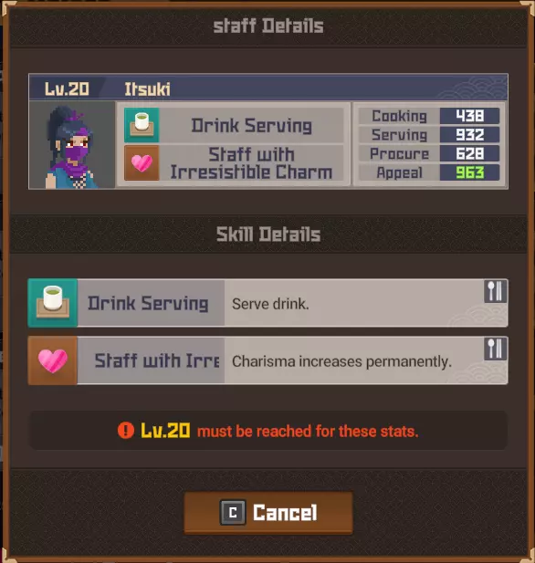 真希会在完成她的任务后解锁,在该任务中你将与一名深渊首领战斗。 提升员工等级有多种积极效果。 在等级3和7时,你将解锁他们的特殊优势。在等级5时,你将解锁一个特殊配方,可使用工匠之火进行学习。 以下是员工升级所需的经验值表格。目前你能达到的最高等级为20级。 从1级升至20级的总花费为327542金币。等级与金币关系表:1-2级 150金币,2-3级 215金币,3-4级 308金币,4-5级 442金币,5-6级 635金币,6-7级 911金币,7-8级 1307金币,8-9级 1875金币,9-10级 2690金币,10-11级 3859金币,11-12级 5537金币,12-13级 7943金币,13-14级 11395金币,14-15级 16348金币,15-16级 23452金币,16-17级 33644金币,17-18级 48264金币,18-19级 69239金币,19-20级 99328金币。使用小游戏【鲨鱼牙齿】刷贝币的策略:对于想要轻松刷贝币的玩家,此方法是游戏中每天轻松获得500贝币的方式,且99.9%的情况下有效。首先,前往街机厅并玩小游戏【鲨鱼牙齿】(每天可玩5次)。押注最大数量的贝币(若要每天获得500贝币,每次需押注100贝币,否则请押注你能承受的最大数量并累计到100)。回合开始后,请立即观察哪颗牙齿有龋洞。 如果AI先行,请让它完成其回合。 轮到你时,从起始位置数到有龋洞的牙齿,计算其间剩余的牙齿数量(此数量不包含有龋洞的那颗牙齿)。 如果该数量不是4的倍数(4、8、12、16),按下能将其减少至4的倍数的数字。例如:如果你和有龋洞的牙齿之间有13颗牙齿,你应选择“1”,将其减至12;如果有19颗,则选择3,减至16,以此类推。 如果该数量是4的倍数,选择“1”(这会延长游戏,让AI有可能犯错,使你脱离4的倍数状态)。重复此操作,直到你的回合不再开始于4的倍数,然后按照上述步骤进行。完成此操作后,当AI的回合开始于4的倍数时,你只需让AI保持在4的倍数就能确保胜利。要做到这一点,保持回合总和等于4即可。如果AI选择1,你就选择3;如果AI选择2,你就选择2;如果AI选择3,你就选择1。注意:确保AI的回合总是从剩余4的倍数个牙齿开始。如果一方的回合从4的倍数开始,那么如果对手操作正确,该方必定会输。成就:通过游玩主线故事完成。