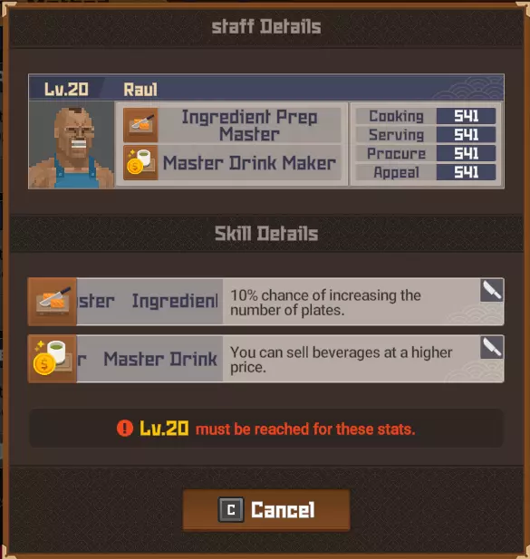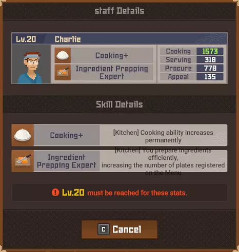 领导力 将一名员工训练至20级。 武器