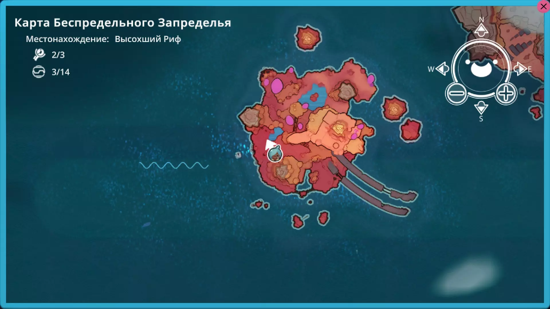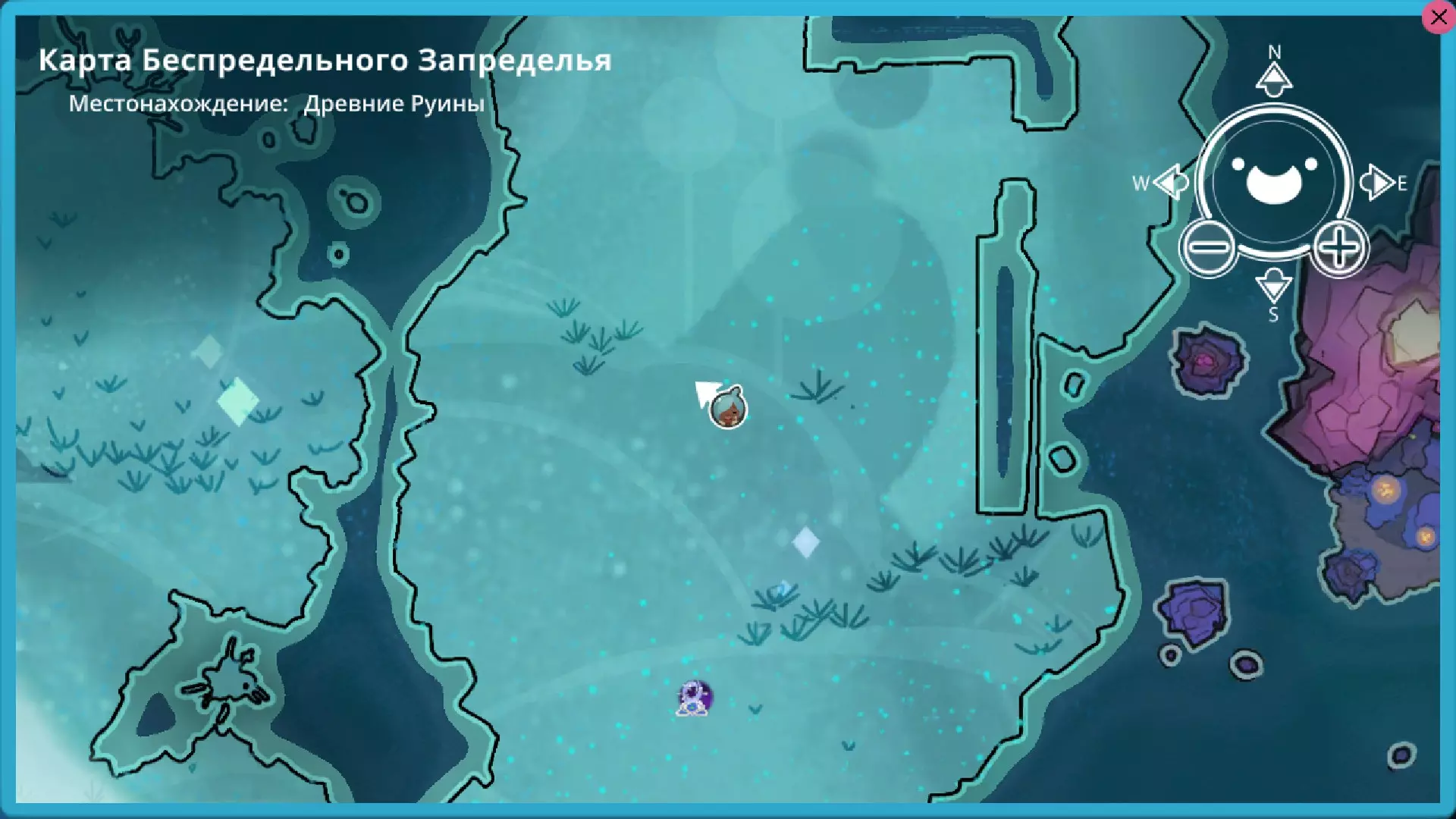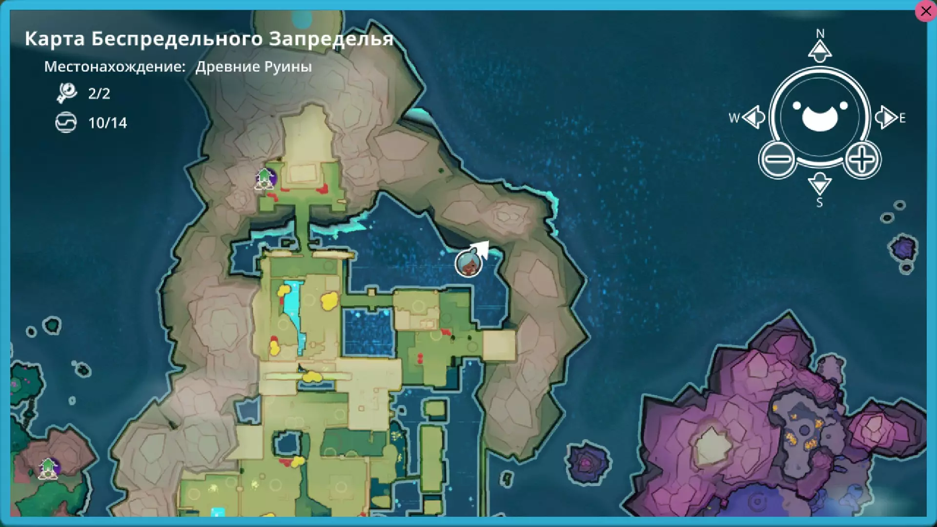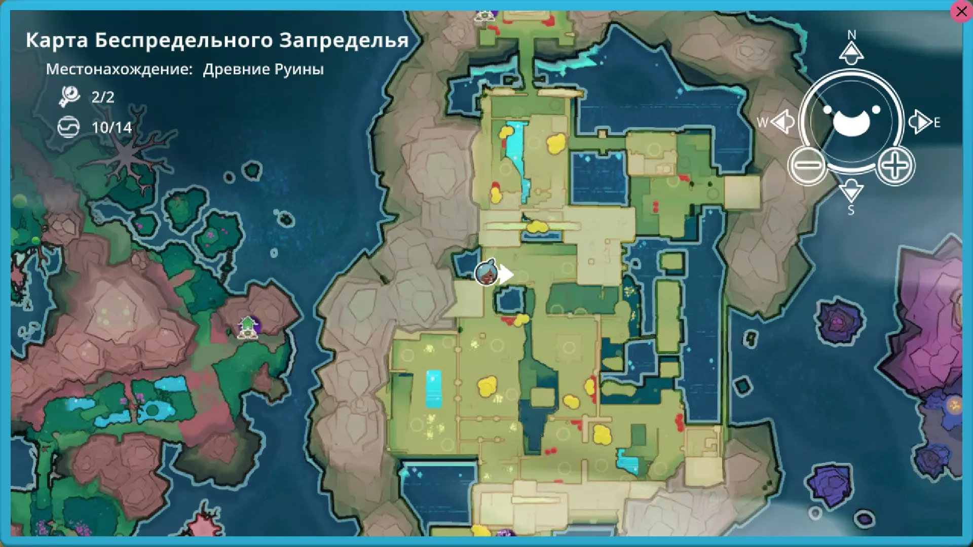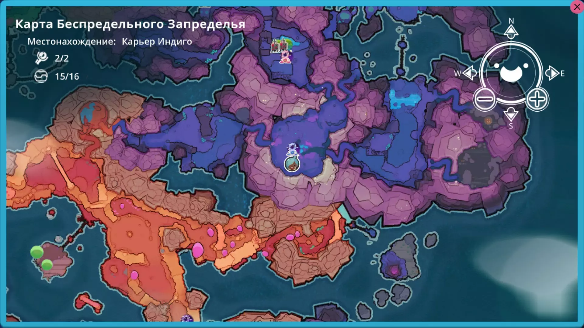 靛蓝生涯 在这个区域有4个戈多。 2个岩石型、1个辐射型和1个水晶型(在单独的岛屿上) 这里有一个岩石型。它会开启传送门。喜爱的食物:心果。